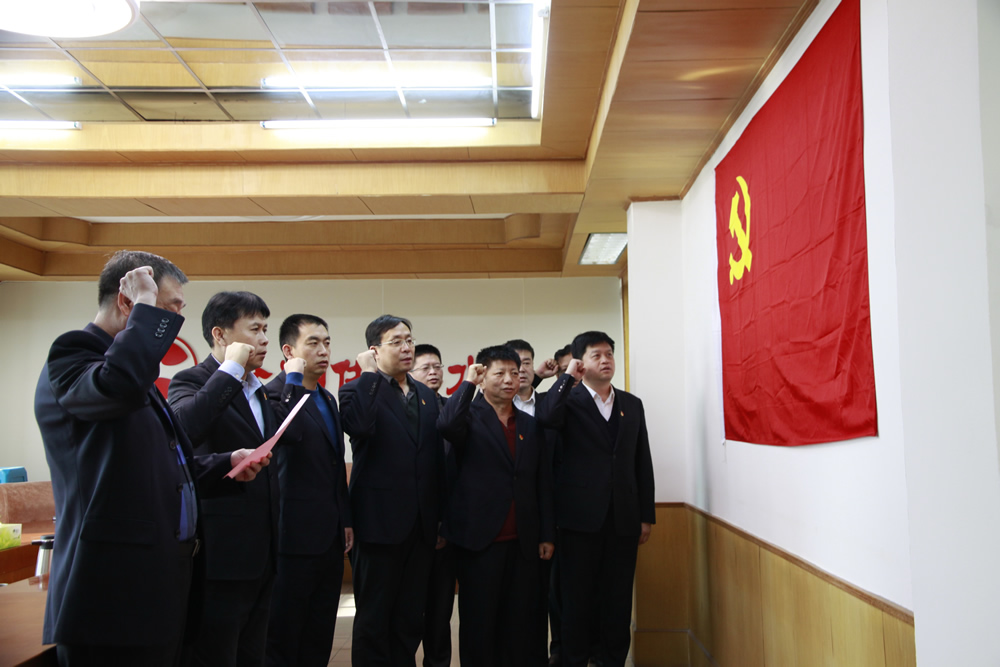 會后,集團黨委中心組成員共同面向黨旗,舉起右拳一起重溫入黨誓詞,鏗鏘有力的莊嚴宣誓聲響徹會議室。宣誓完畢后,黨委書記強調,作為中心組成員,我們要以身作則、率先垂范,牢記入黨誓詞,經常加以對照,堅定不移,從自身做起,全面落實從嚴治黨要求,以實際行動貫徹好黨的十九大精神。